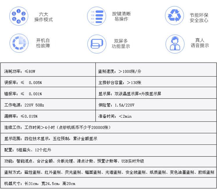 點(diǎn)鈔機(jī)類型: 插電式<br>屏幕數(shù)量: 雙屏<br>級別: B類<br>顏色分類: 銀黑色 灰黑色