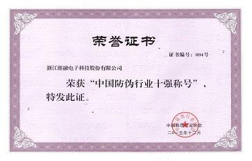 中國防偽行業(yè)十強稱號