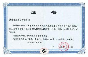 中國防偽行業(yè)協(xié)會防偽技術(shù)一等獎