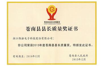 蒼南縣長質(zhì)量獎證書