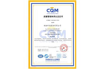 職業(yè)健康安全管理體系CQM認(rèn)證證書