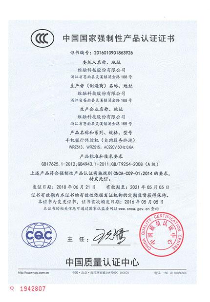 手機(jī)銀行體驗(yàn)機(jī)(WRZ513 515)CCC證書