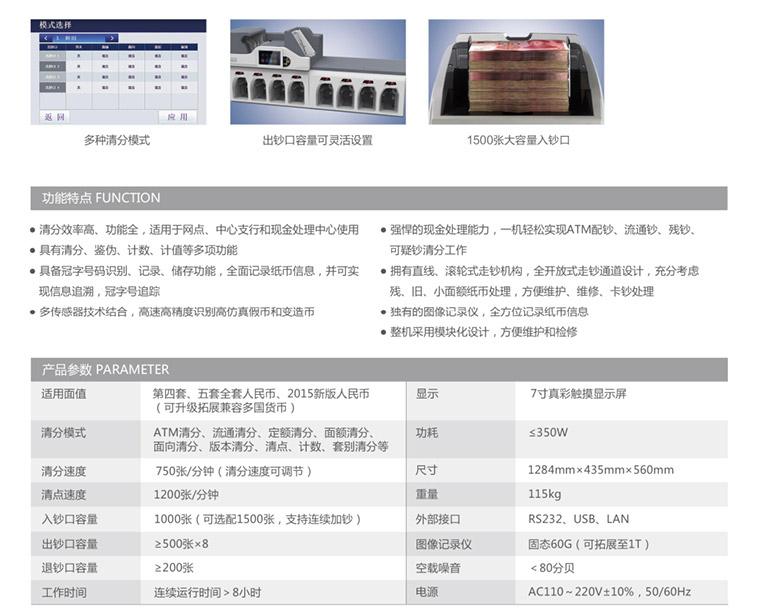 智能系統(tǒng)8x500張出鈔口,一次性滿足多種清分需求<br>類型: 插電式<br>顏色: 亞光黑 灰黑色<br>品牌: 維融<br>型號: WR8800 8+1紙幣清分機