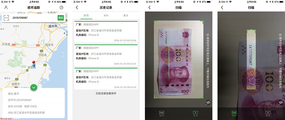 用戶可通過(guò)該應(yīng)用進(jìn)行多種方式的錢幣查詢,可通過(guò)紙幣冠字號(hào)查詢或者紙幣掃描查詢來(lái)查看紙幣流向以及判定紙幣的真?zhèn)巍?/p>