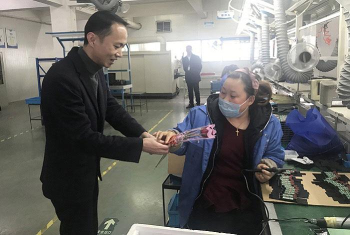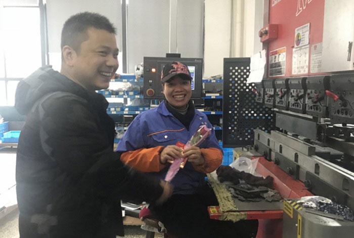 3月8日,維融股份組織開展“三八”婦女節(jié)女職工慰問活動。公司黨支部、工會、女職委一行人,走近車間,為工作在各崗位的女職工送上鮮花和紅包,獻上節(jié)日祝福。據(jù)了解,“三八”婦女節(jié)給女職工發(fā)福利的傳統(tǒng)在維融中已持續(xù)了10多年。