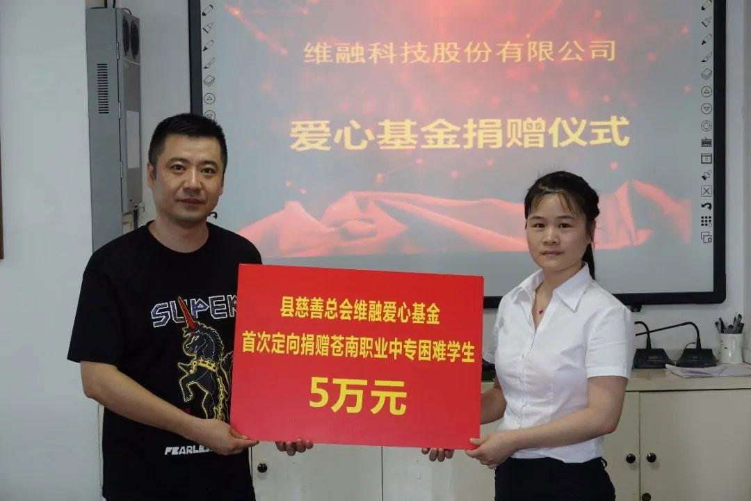 5月中旬,維融科技與蒼南縣職業(yè)中等專業(yè)學(xué)校簽訂《校企合作協(xié)議書》,雙方達(dá)成以產(chǎn)教融合模式,實(shí)現(xiàn)人才培養(yǎng)適應(yīng)維融科技發(fā)展需求。6月,經(jīng)蒼南縣維融愛心基金理事會商議、請示,縣慈善總會同意,將縣職業(yè)中等專業(yè)學(xué)校全體學(xué)生納入“蒼南縣維融愛心基金”幫扶范圍內(nèi)。